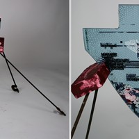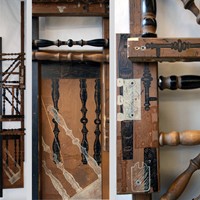 relief/sculpture, alternative surface. Domestic into formal Student had disassembled a door, linocut blocks to respond to the new and existing shapes and textures. Later reassembled the pieces as a new assemblage